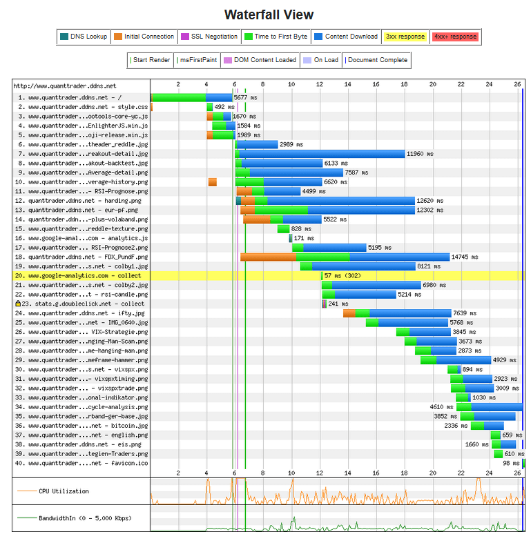 Since the computing power of my Raspberry Pi2 computer is very limited, the first byte in particular takes a long time. (every page request generates a new dynamic webpage) Almost 4 seconds elapse between your request of the website and the response of my small server. It just takes a little bit until WordPress and mysql can deliver a dynamic website… (over 6 sec until the page “visually” is finished loading)